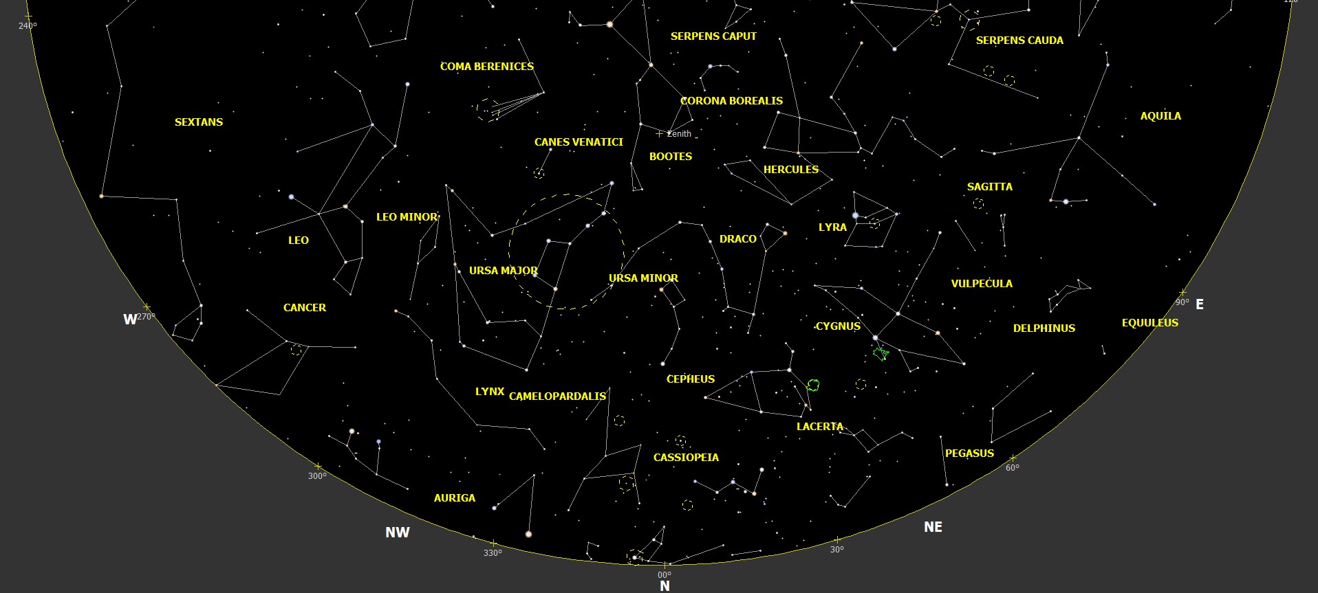 Mapa del cielo visible desde Madrid / España, (Latitud 40º N)